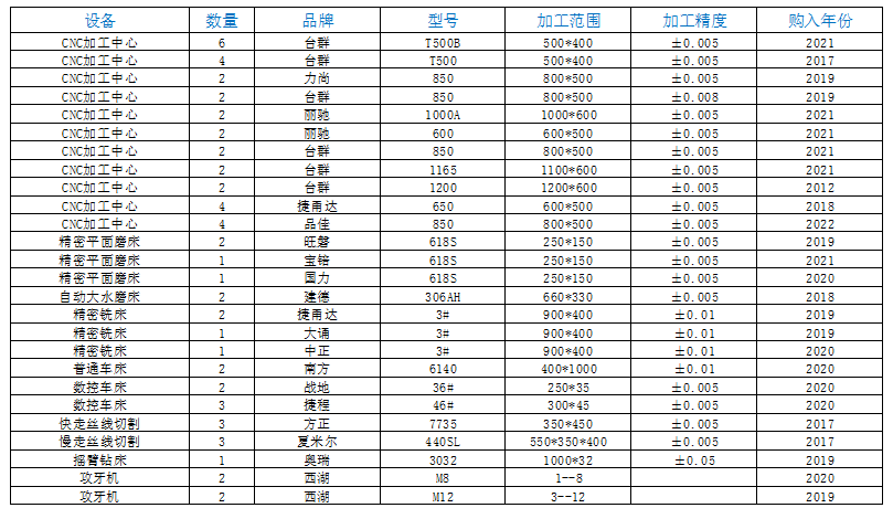 公司應(yīng)開(kāi)發(fā)需求,擁有各類精密加工設(shè)備60臺(tái),我司設(shè)備清單。